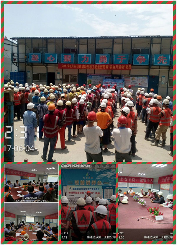 為貫徹落實(shí)集團(tuán)公司《關(guān)于開(kāi)展2017年“安全生產(chǎn)月”和“安全生產(chǎn)萬(wàn)里行”活動(dòng)的通知》文件精神,第一工程公司于6月2-7日,分別在各項(xiàng)目部召開(kāi)了“安全生產(chǎn)月”活動(dòng)宣貫會(huì),要求各項(xiàng)目部通過(guò)多種形式,扎實(shí)開(kāi)展安全生產(chǎn)月活動(dòng),全面落實(shí)企業(yè)安全生產(chǎn)主體責(zé)任。