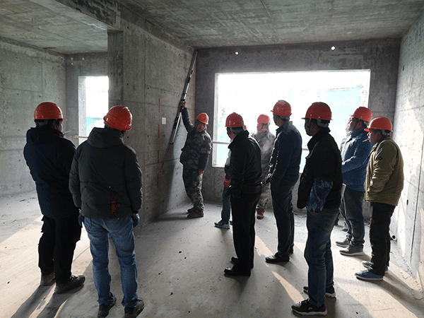 工程公司技術(shù)負(fù)責(zé)人徐仁貴對實測實量的檢查內(nèi)容、評判標(biāo)準(zhǔn)、測量對象、測量方法一一進(jìn)行了講解,并對參培人員進(jìn)行了書面考試。培訓(xùn)結(jié)束后,全體參培人員進(jìn)行了現(xiàn)場演練,由學(xué)習(xí)優(yōu)秀的學(xué)員針對實測測量工作進(jìn)行了講解和指導(dǎo)。